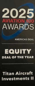 Titan Aviation Leasing (“Titan”) has been recognized with the 2025 Aviation 100 “Equity Deal of the Year” award for its Titan Aircraft Investments II platform—an achievement that underscores the company’s growing leadership and innovation in the global aircraft leasing and finance market.